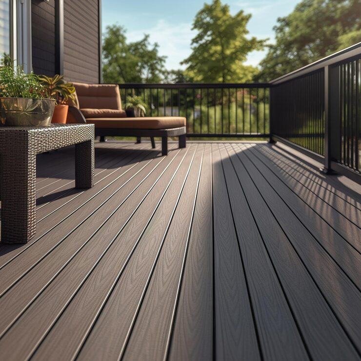 Modern composite decking looks just like real wood but is made from a blend of recycled wood and plastic. It won't fade, scratch, or splinter, leaving you more time to enjoy your weekends.