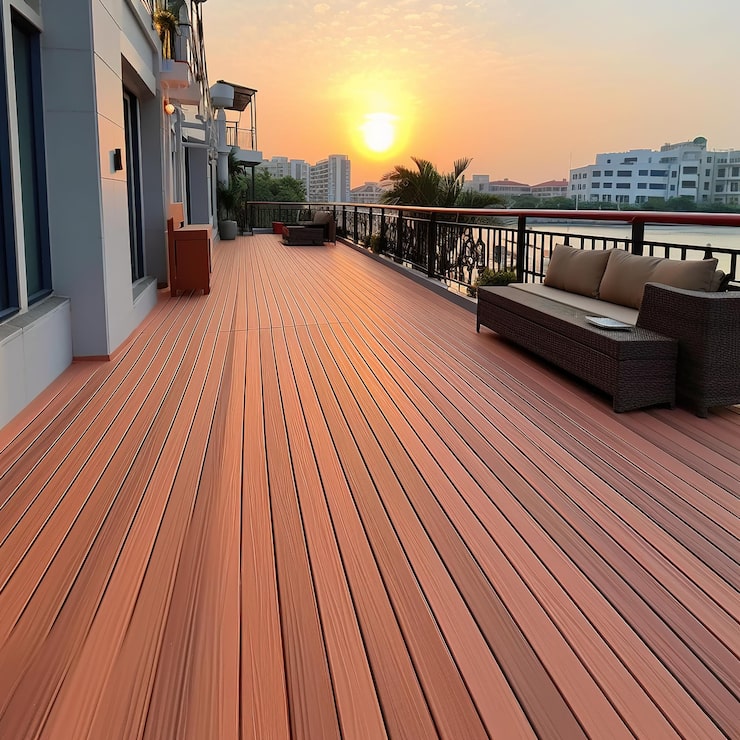 Modern composite decking looks just like real wood but is made from a blend of recycled wood and plastic. It won't fade, scratch, or splinter, leaving you more time to enjoy your weekends.